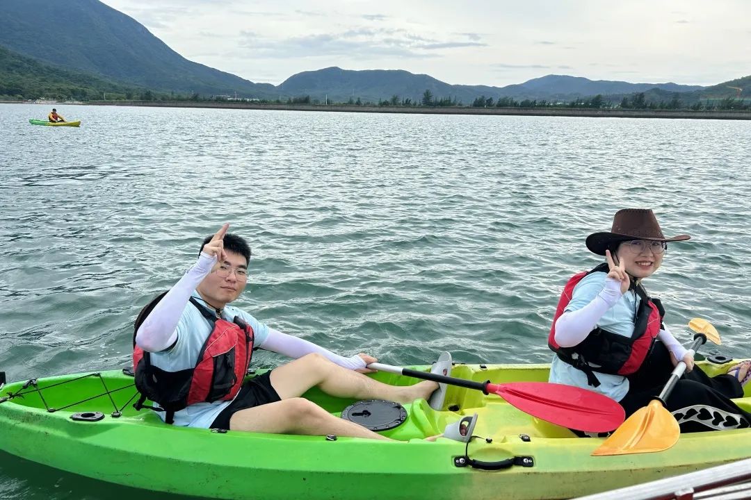 由專業(yè)的皮劃艇教練為大家做皮劃艇專業(yè)動作要領(lǐng)和安全注意事項的培訓(xùn),大家認(rèn)真聆聽并迅速掌握要領(lǐng)。培訓(xùn)結(jié)束后,大家躍躍欲試,穿上救生衣,踏上皮劃艇,撐起長船槳,自由練習(xí),一陣陣歡聲笑語和整齊的“左、右、左、右...”打破了海面的平靜。